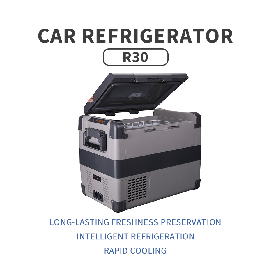 T30-j35Car Refrigerator, made of aluminum alloy, suitable for both outdoor camping and home use.
